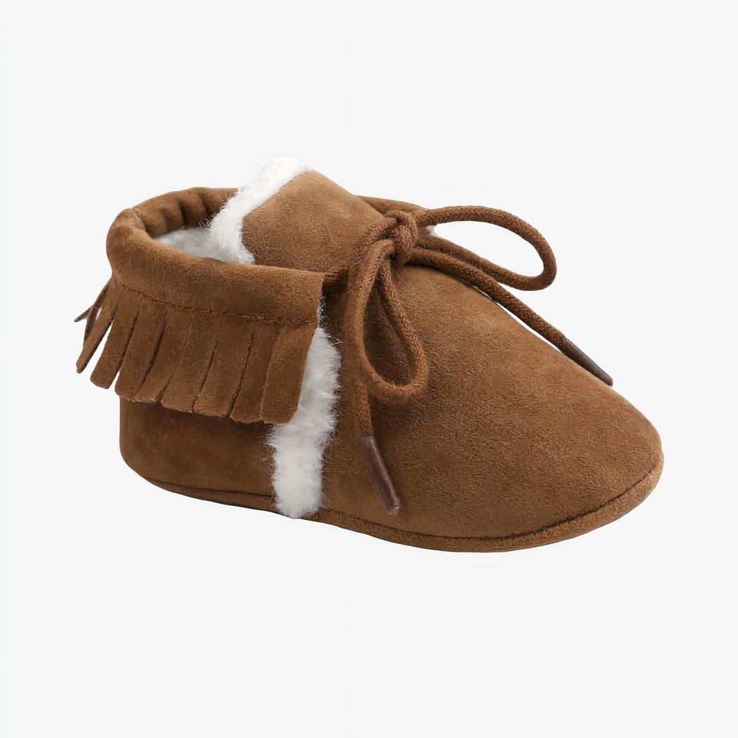 Notre mocassin pour bébé en daim d’hiver est un objet de qualité, conçu spécifiquement pour les nourrissons filles. Ce produit en daim doux et élégant garantit une chaleur optimale à vos petites princesses durant la saison hivernale. Le design du mocassin a été minutieusement pensé pour assurer une ergonomie adaptée aux pieds délicats des nourrissons. Les matériaux utilisés sont sélectionnés avec soin afin de garantir une sensation agréable au toucher ainsi qu’une grande flexibilité au mouvement.