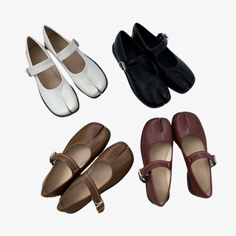 Inspirées des chaussures Tabi japonaises traditionnelles, ces élégantes ballerines Mary Jane allient un héritage intemporel à une touche contemporaine. Leur design à bout fendu offre non seulement une esthétique unique et avant-gardiste, mais aussi un confort et une flexibilité optimaux pour un usage quotidien.