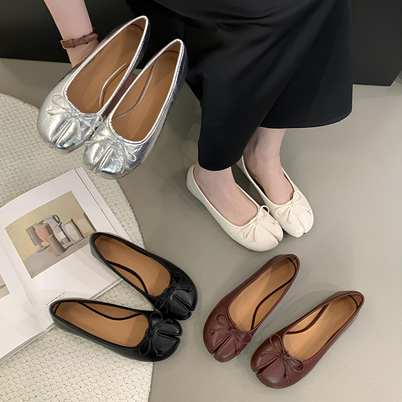 Inspirées des chaussures traditionnelles japonaises Tabi, ces ballerines plates offrent un équilibre parfait entre style et bien-être. Leur design à bout fendu apporte une touche originale et raffinée, tandis que leur matière souple et légère garantit un confort absolu.