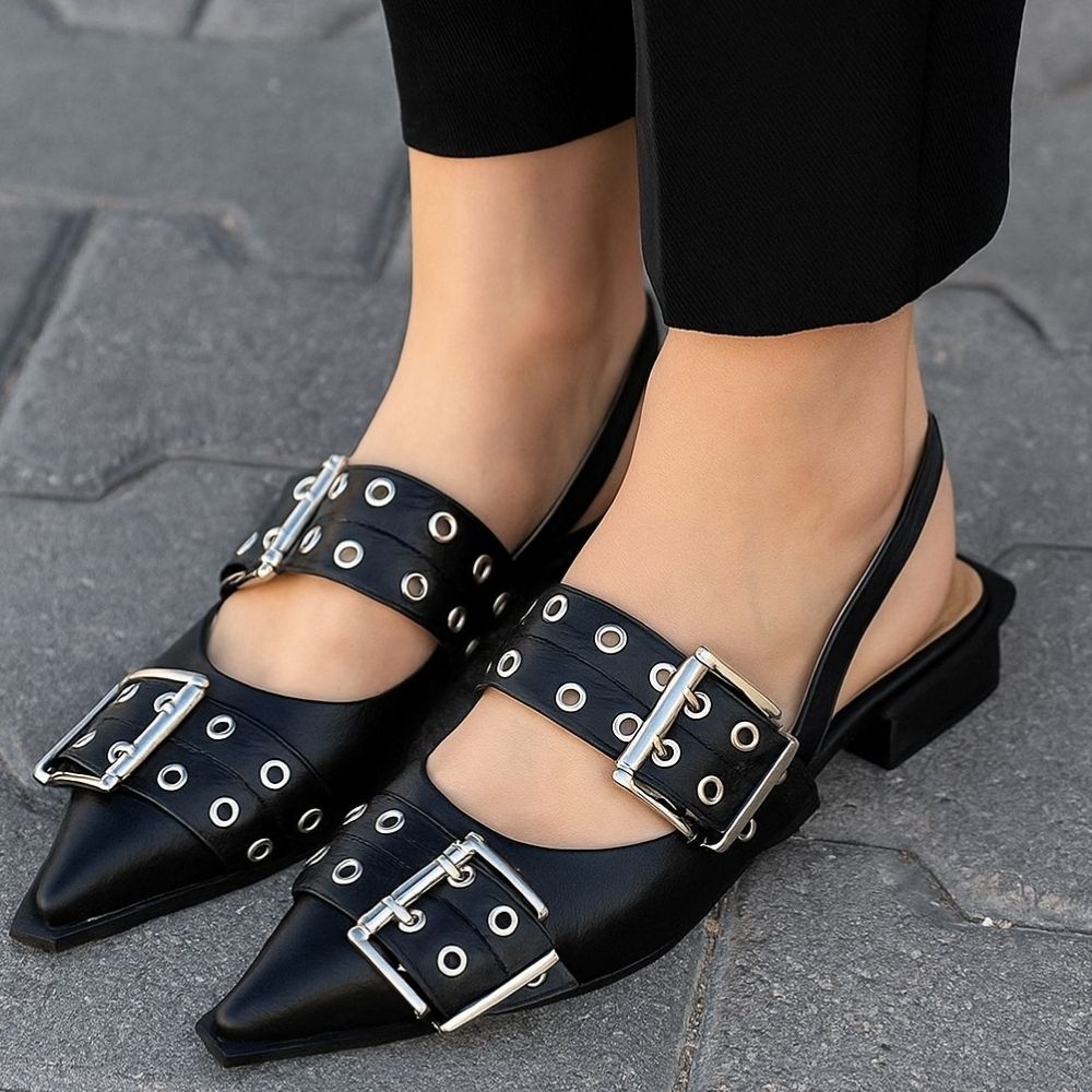 L’élégance rencontre le confort dans ces mocassins ballerines. Avec leur bout pointu distinctif et des boucles brillantes, ils promettent de captiver les regards.