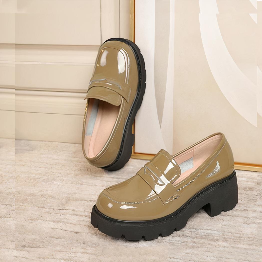 Ces mocassins aspect vernis à semelle épaisse sont le choix parfait pour une finition élégante et sophistiquée de votre tenue. Fabriqués avec un vrai souci du détail, ces mocassins sont conçus pour impressionner dès le premier regard. Leur cuir véritable vernis procure une brillance luxueuse qui ajoute instantanément de l’élégance à vos vêtements. Leur finition lisse est douce au toucher, offrant un confort accru tout en assurant une excellente longévité.