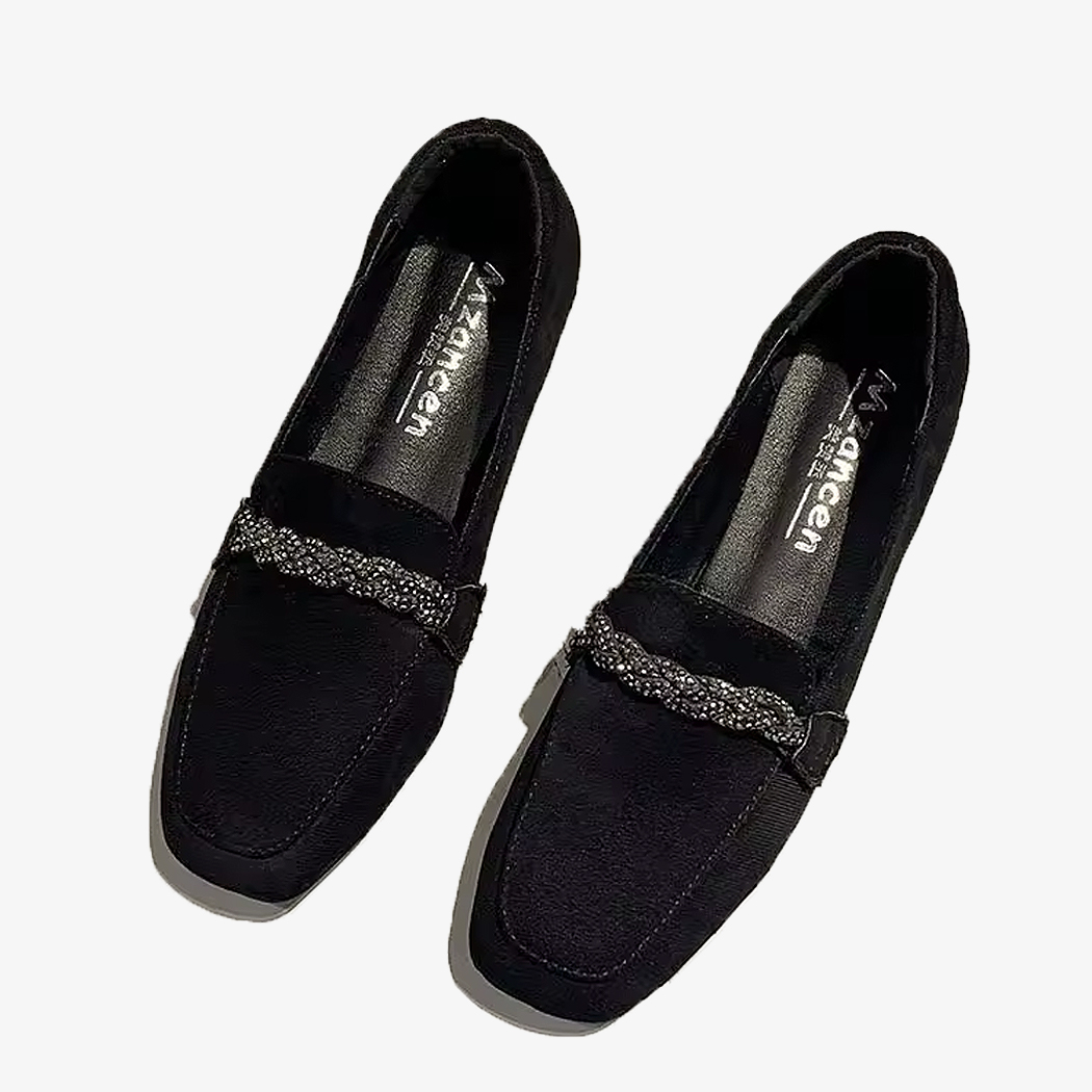 Ajoutez une touche de raffinement à votre garde-robe avec ces mocassins en daim ornés d’une chaîne à strass. L’association du daim doux et velouté avec l’éclat subtil des strass crée un équilibre parfait entre sophistication et modernité.