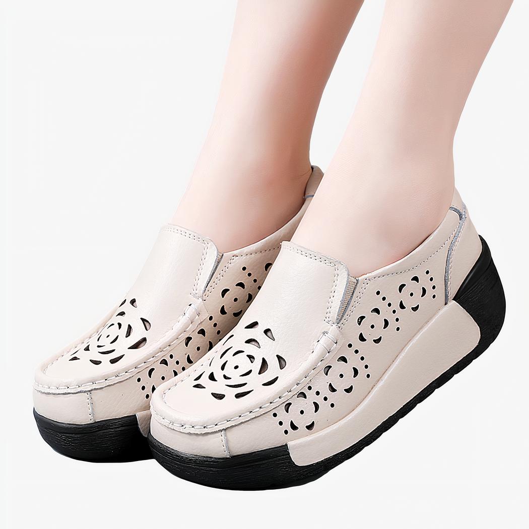 Nos mocassins orthopédiques aspect cuir ont une semelle à plate-forme avec le talon sur-élevé afin que votre pied soit dans une bonne posture et par extension le reste de votre corps. Grâce à la semelle en caoutchouc, le choc de la marche est absorbé afin que vos pieds et vos articulations soient protégés.