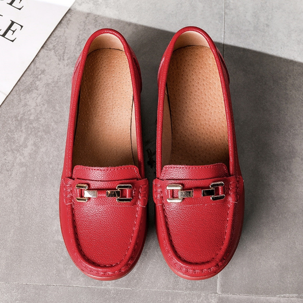 Le design de ces mocassins permet à la fois de vous assurer un excellent confort, tout en vous procurant un style impeccable. En effet, grâce à sa forme à semelle compensée et sa matière rouge brillant, vous aurez un magnifique look très féminin, sans devoir faire souffrir vos pieds pour autant. Portez un beau rouge à lèvre en plus et vous serez éblouissante !