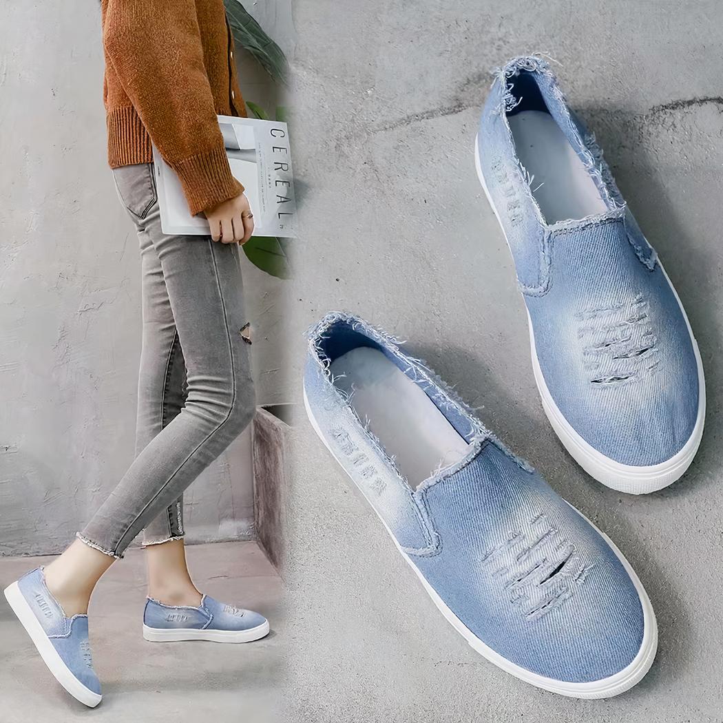 Qu’il s’agisse d’une journée décontractée en denim et t-shirt blanc, ou d’une tenue plus sophistiquée avec une robe légère et un blazer, les mocassins en jean clair délavé et déchiré ajouteront une touche de caractère unique à toutes vos combinaisons vestimentaires.
