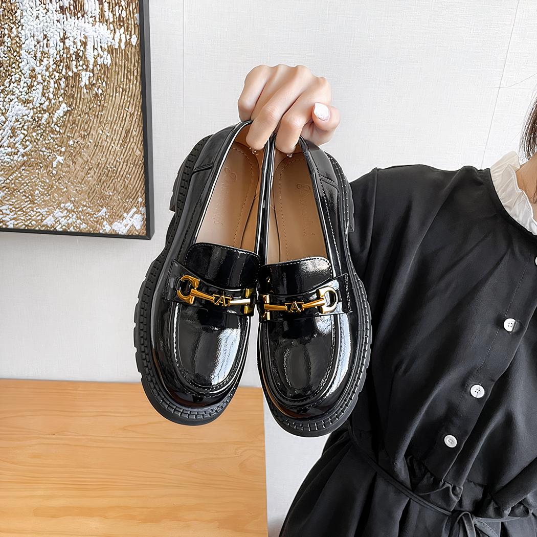 Nos mocassins noirs vernis pour femme sont des chaussures classiques avec une touche chic. La semelle épaisse offre du confort et du style.