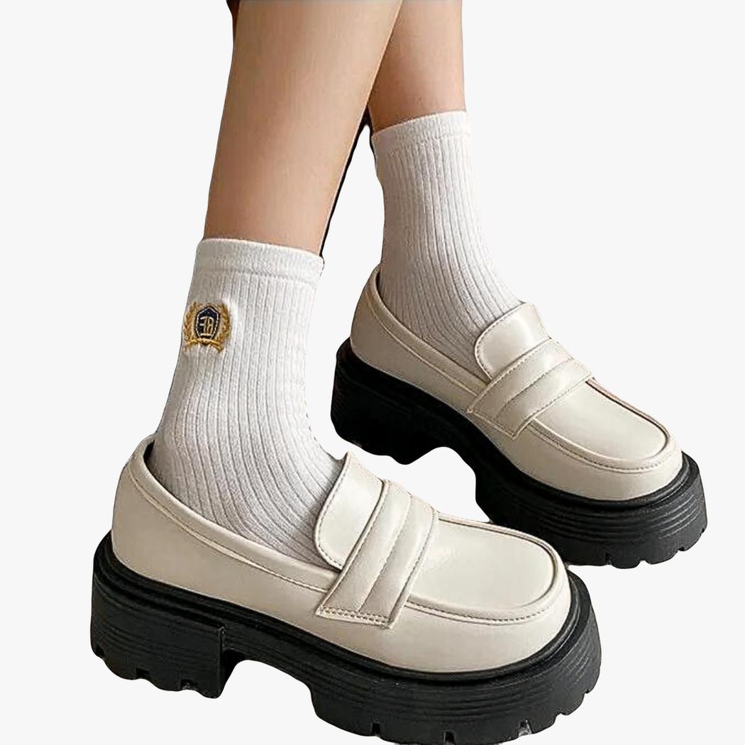 Disponibles en noir ou en blanc, ces mocassins en cuir synthétique sont des pièces polyvalentes à intégrer dans votre garde-robe. Associez-les à une jupe et une chemise blanche pour un look d’écolière revisité, ou à un jean slim et un blazer pour une allure chic et sophistiquée.