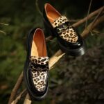 Ajoutez une touche de caractère à vos tenues grâce à ces mocassins noirs sublimés par des motifs léopard saisissants. Le contraste entre le noir verni et l’imprimé sauvage évoque une allure audacieuse et féminine.
