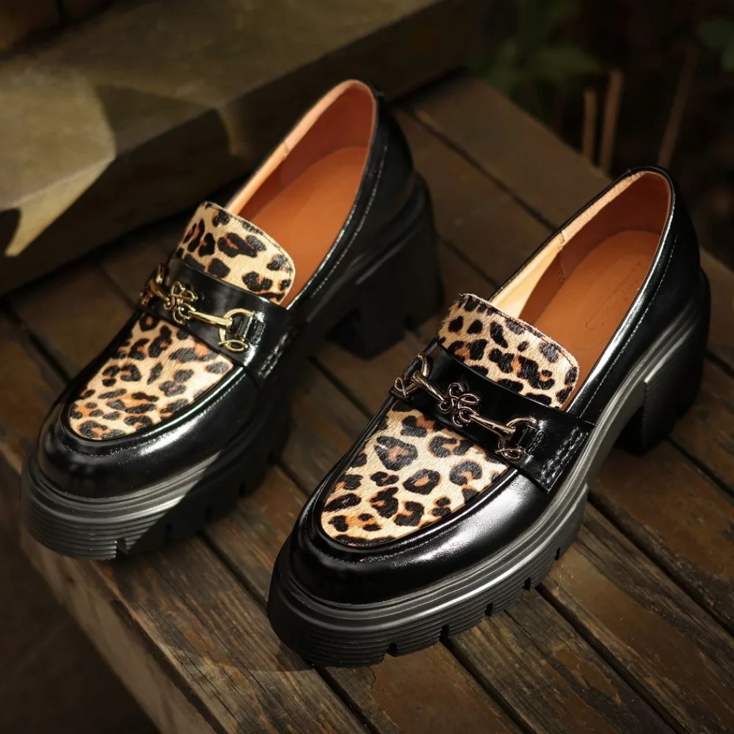 Les détails en métal doré ajoutent une touche de luxe discrète qui complète parfaitement le motif léopard. Ces mocassins incarnent l’audace et la sophistication, en faisant un choix idéal pour les femmes qui osent se démarquer.