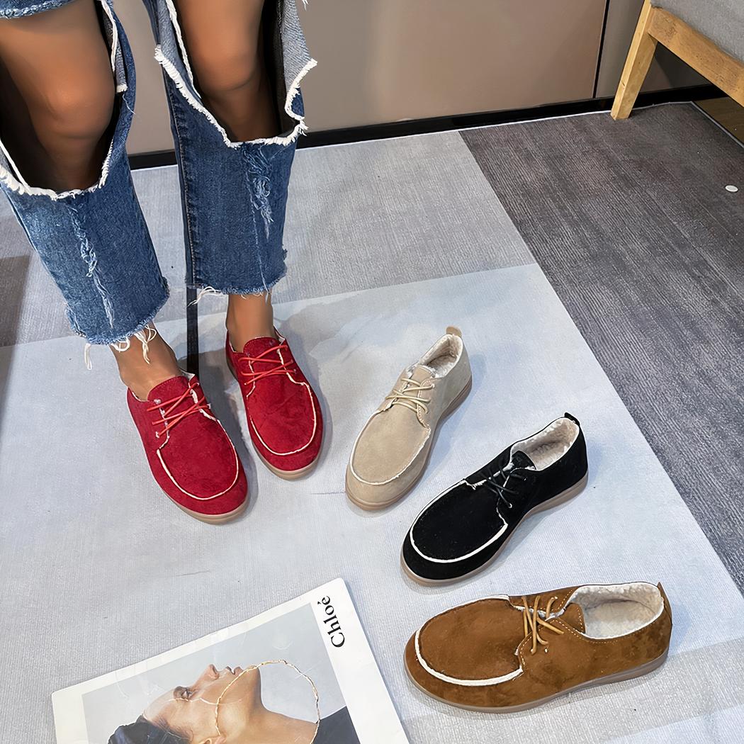 Ce mocassin plat à lacets pour femmes est le choix parfait pour une tenue décontractée, mais sophistiquée. Fabriqué à partir de matériaux de qualité supérieure, ce mocassin offre un confort inégalé et une durabilité exceptionnelle qui rendront votre expérience de port agréable. Le daim synthétique doux utilisé dans la fabrication de ces chaussures vous garantit un toucher velouté sous les pieds tout en étant facile à entretenir.