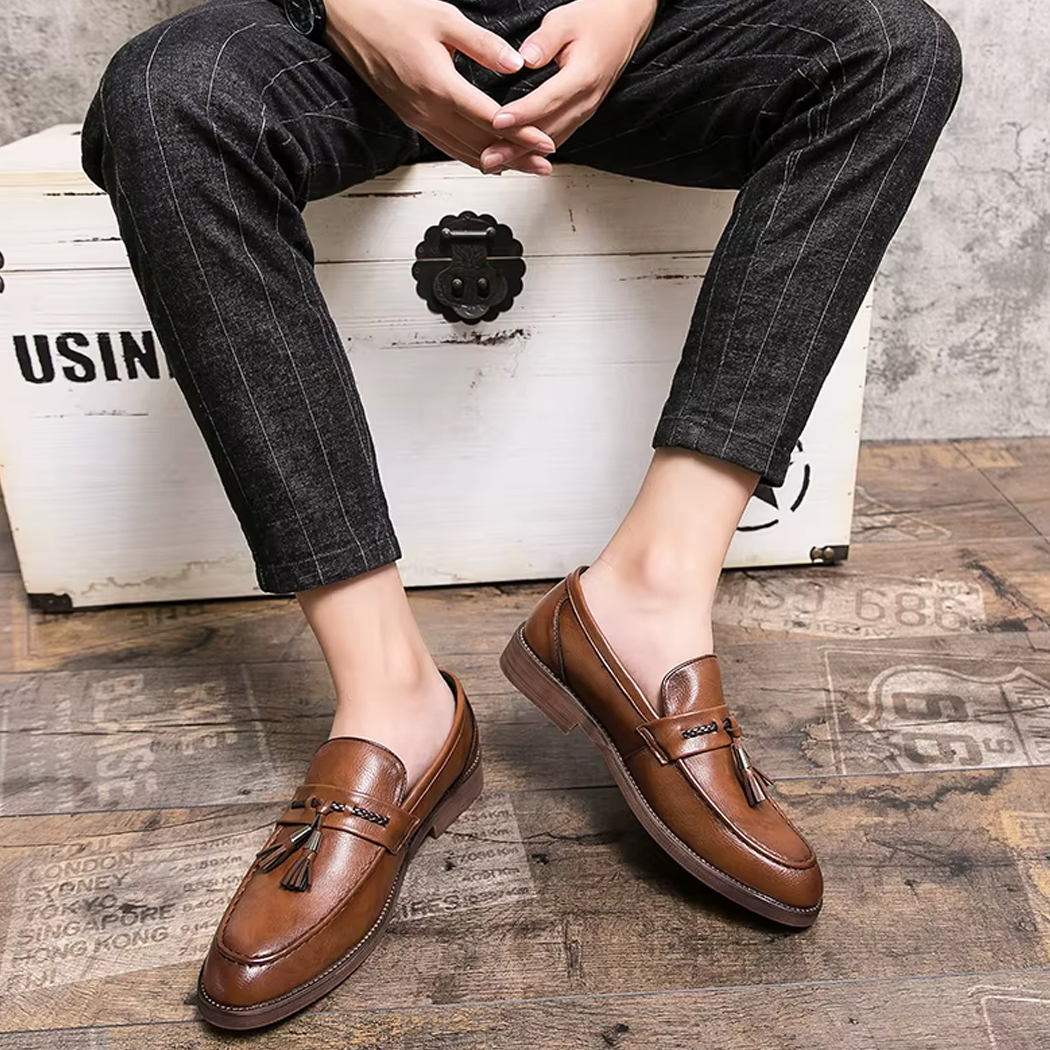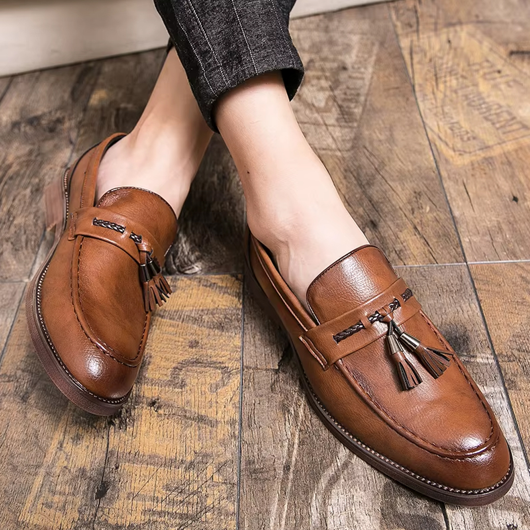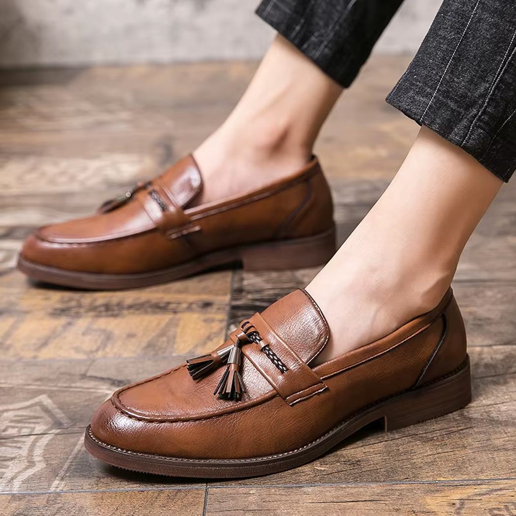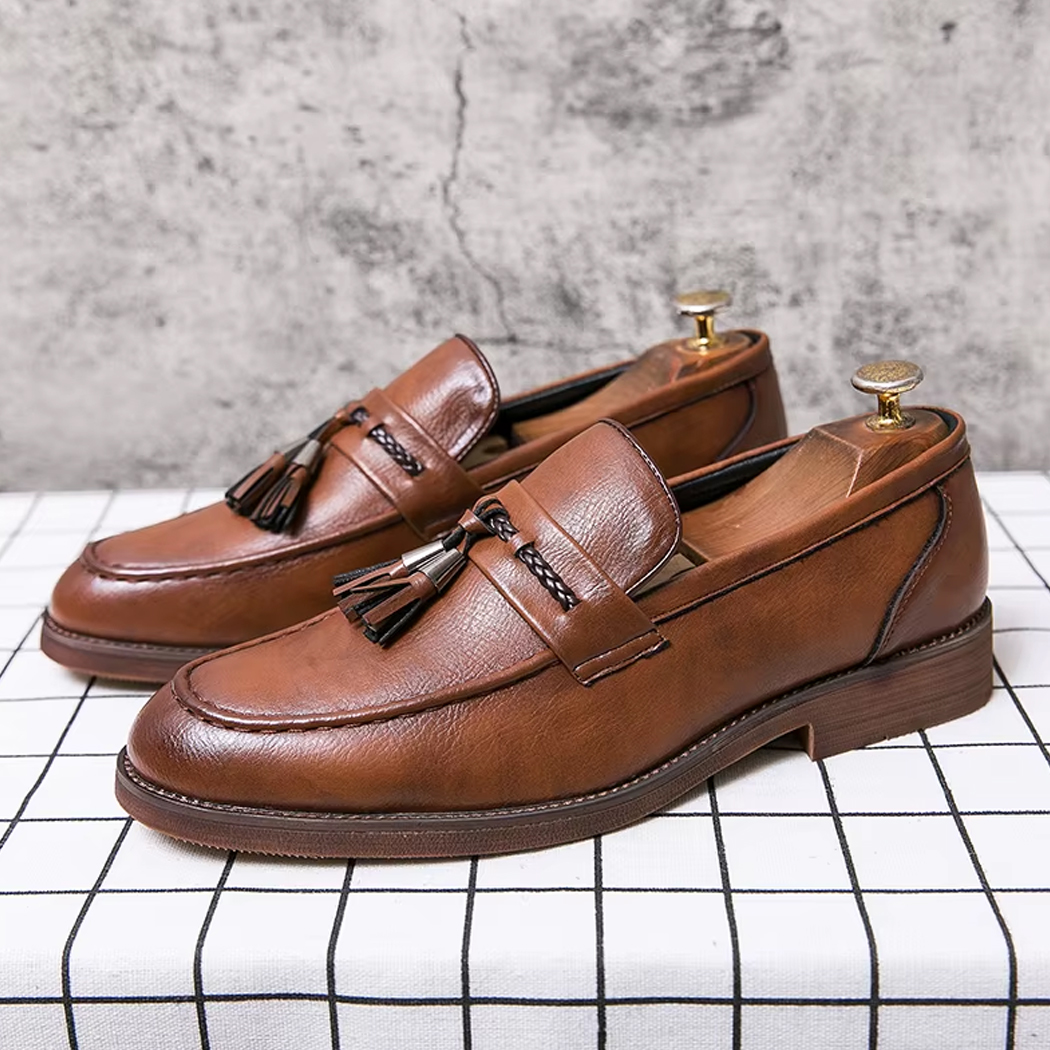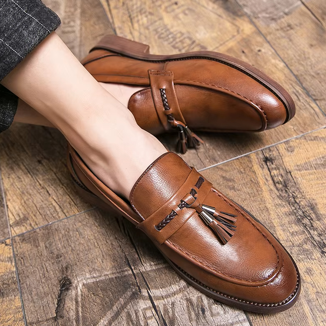 Ce modèle au charme intemporel séduit par ses finitions travaillées, son cuir lisse de qualité et ses glands discrets qui ajoutent une touche de distinction. Idéal pour ceux qui savent que l’élégance réside dans les détails, il s’impose comme l’allié parfait des hommes exigeants.