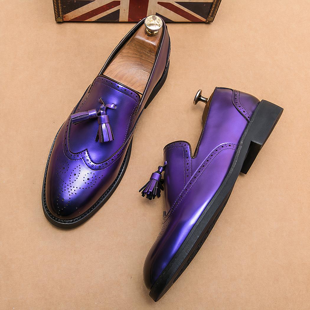 Nos mocassins à gland violet métallique pour hommes sont un choix audacieux et élégant pour les hommes qui aiment se démarquer de la foule.