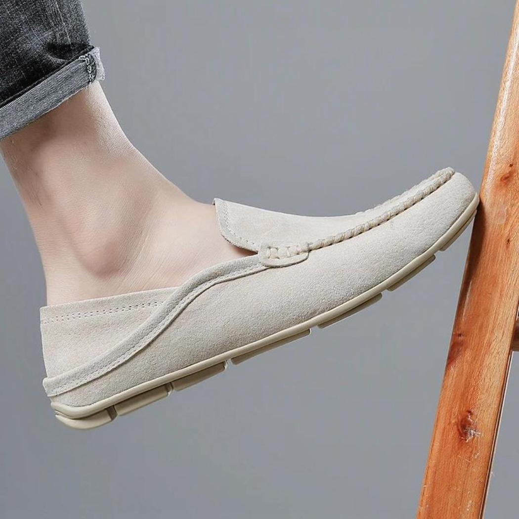 Explorez le luxe du cuir véritable suède de vache avec nos mocassins pour homme. Ce cuir “non lisse” offre une texture douce et brossée, ajoutant une touche de sophistication à votre style. Parfait pour les amateurs de qualité et de confort, ces mocassins vous offrent un look élégant.