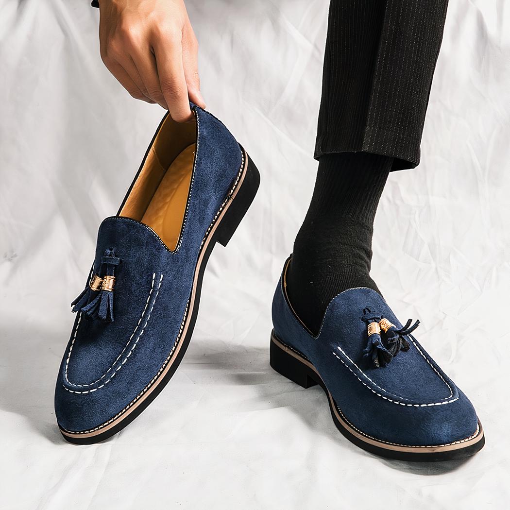 Ces mocassins au style italien bleus sont fabriqués en daim synthétique souple. Leur design classique et élégant les rend parfaits pour toutes les occasions, qu’il s’agisse d’un événement formel ou décontracté.