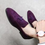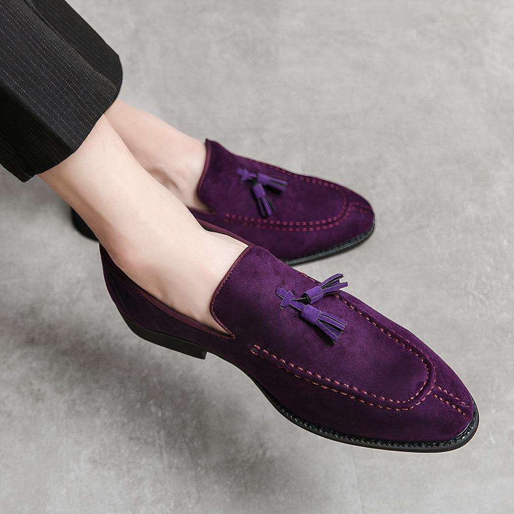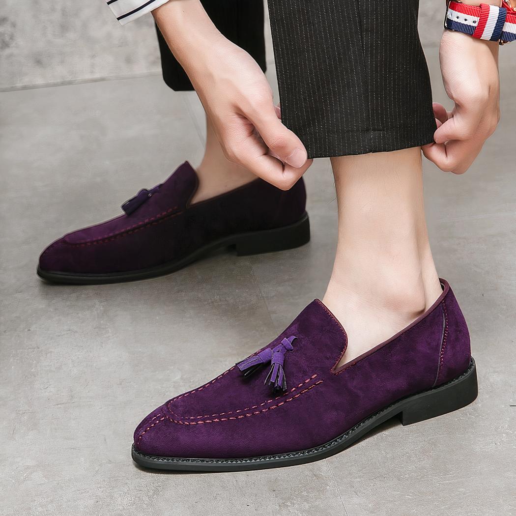 Ces mocassins pour hommes en daim violet offrent une touche de couleur audacieuse et un style élégant.